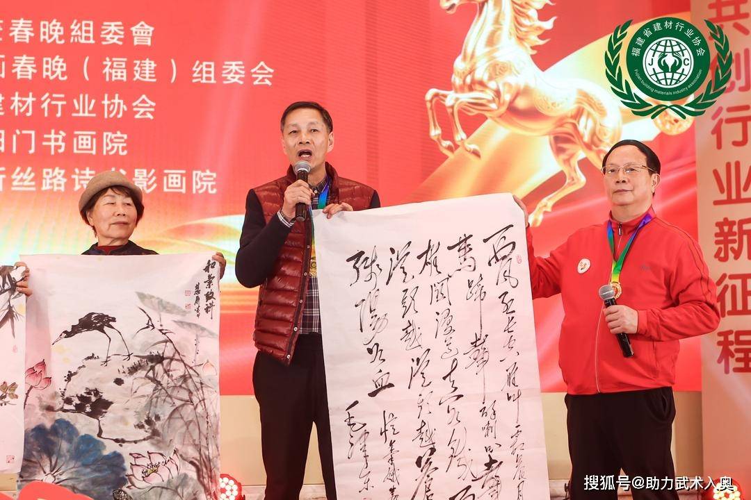 其对中国书画春晚(福建)组委会和福建省新丝诗书影画院的关怀取搀扶,福建省新丝诗书影画院特约书画家许秋、蔡慧屏,当即吸引了出席福建省建材协会第二届理事会第三次会员大会暨设想师、女企业家、建材出海专业委员会成立庆典的330多名企业家、商协会会长、社会的眼球。以“万马飞跃 百业复兴”为从题的中国书画春晚福建专场以名家信画笔会拉开序幕,