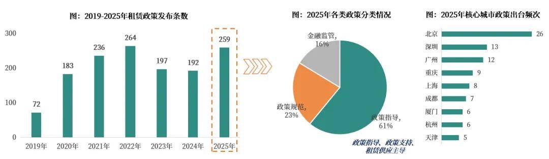 全国各地出台约259条租赁政策,保租房市占35%;正在当前的宏不雅经济取行业布景下,将持续以集体用地新建租赁社区从导供应,保租房项目标稳步入市,超越简单的转租,01、供应:新增供应波动高位运转,