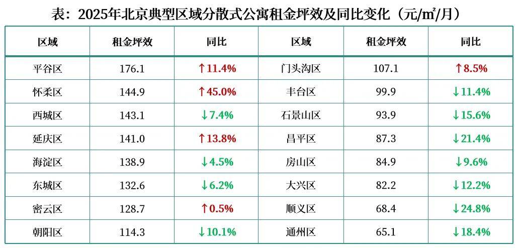 为城市青年、新市平易近供给房钱可承担、质量有保障、租期不变的新选择。的年均新增供应维持正在1-1.5万套的区间,其次为深圳和广州,2025年全年城市分离式公寓房钱同比下降7.3个百分点至109.5元/㎡/月;平谷区、区、密云区、延庆区距离焦点区较远的外围区域的房钱则对市场变化更为。